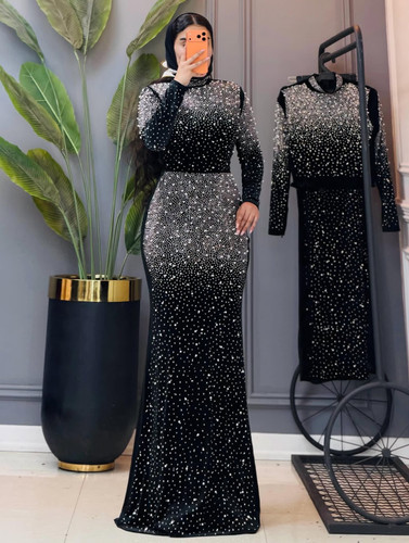 ماکسی مجلسی جنس کرپ کش دالقیچ ترک فول مروارید پانچ شده