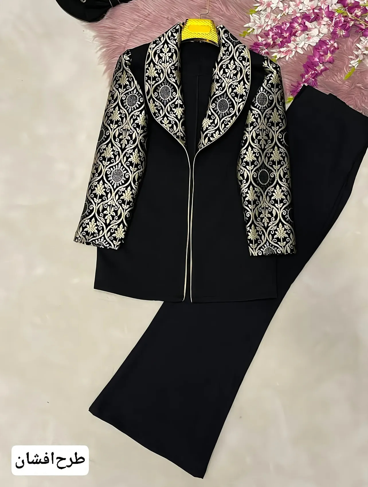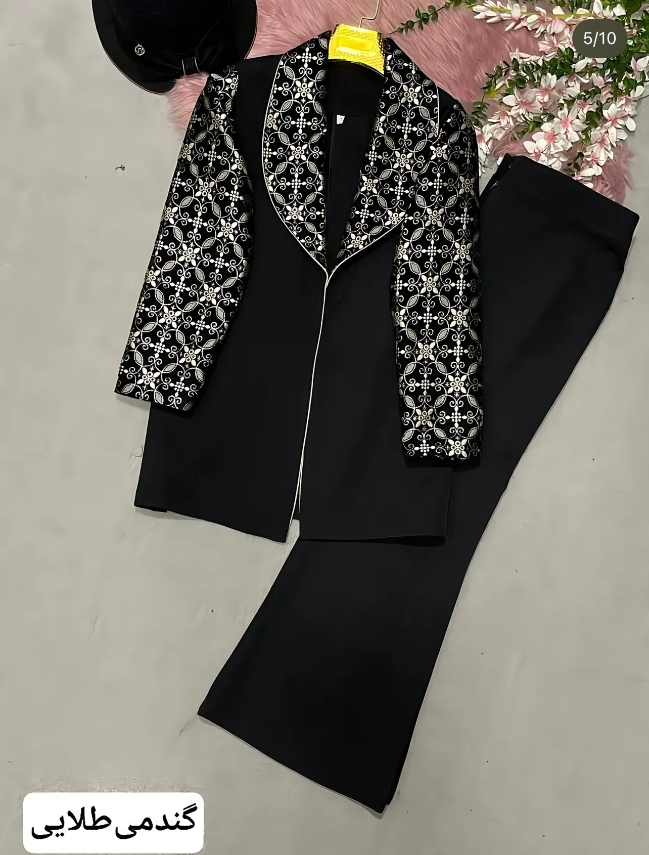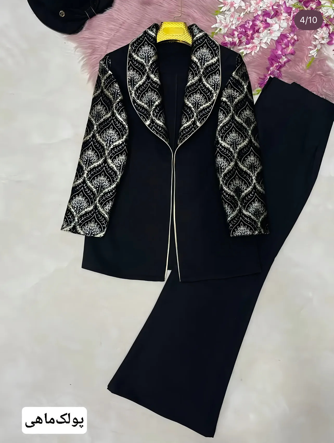 کت شلوارمجلسی عیدانه جنس کرپ مازراتی وپارچه سوزندوز همه لایی کوبی از سایز ۳۸ تا ۵۲ ترند سال مناسب مجالس ومهمانی وعید استایل شیک این محصول اصلی وقابل سفارش میباشد