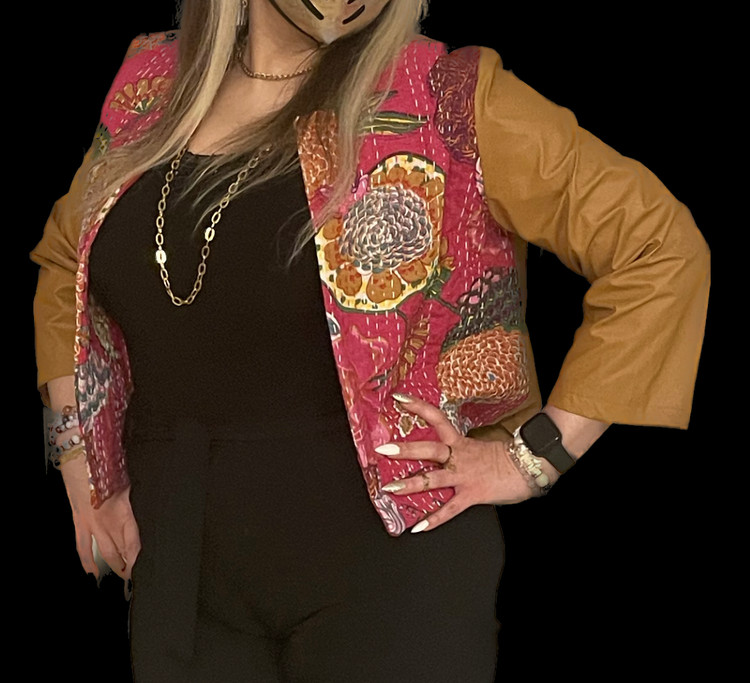 کراپ کت تلفیقی از پارچه کوکدوزی کاردست هند وچرم از سایز ۳۸ تا ۴۶ خوش ایستا سبک راحت فانتزی مورد استفاده روی مانتو وبه صورت تک این محصول اصلی وقابل سفارش در رنگبندی