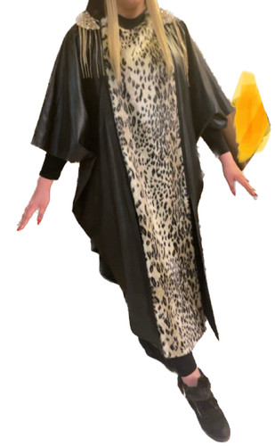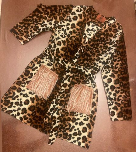 پالتووست خز پلنگی پرز بلند با استر کامل همراه کمربند چرم