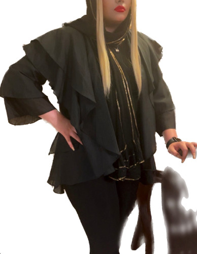 مانتو مجلسی کرپ طرحدار مشکی لخت جیبدار