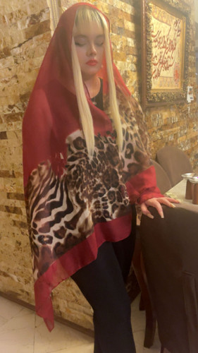 روسری مشکی قواره بزرگ حاشیه پلنگی نخی ترک